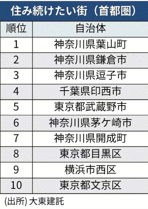 大東建託が毎年発表している「住み続けたい街ランキング」が今日(2025/09/04)の日経新聞の記事に掲載されました。