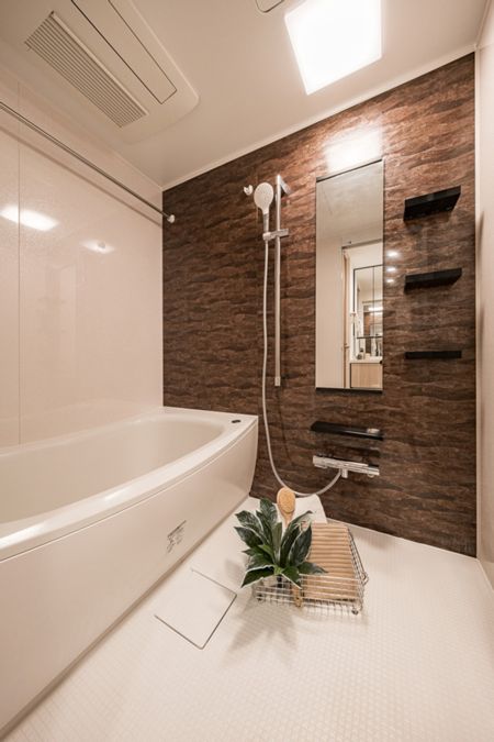 毎日のバスタイムを贅沢に、豊かにしてくれるバスルームです。美しいカーブと全身を包み込むような入浴感が特長の浴槽は、くつろぎの空間を演出してくれます。