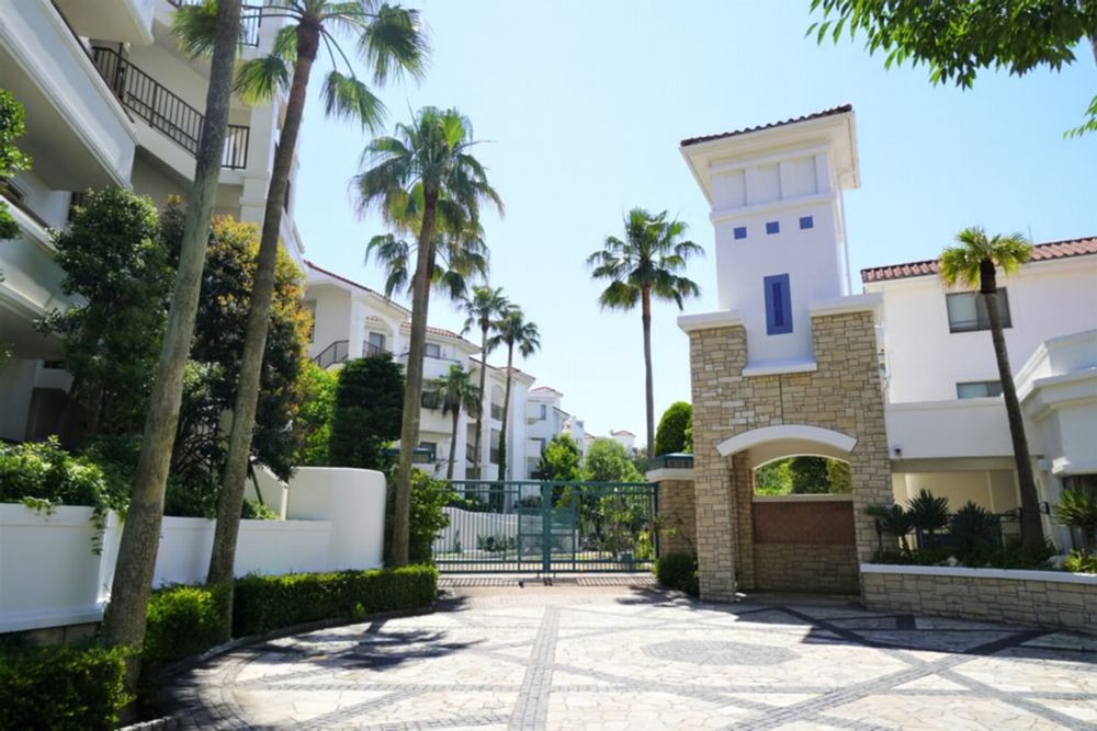 パシフィックガーデン茅ヶ崎は、かの「パシフィック・ホテル」跡地に1999年誕生した低層分譲マンションです。約4900坪の広大な敷地にA~Eの5棟を配し、空地率65%超の開放的な環境を実現。西海岸風の白壁とオレンジ瓦、パームツリーの植栽が湘南らしいリゾート感を演出しています。