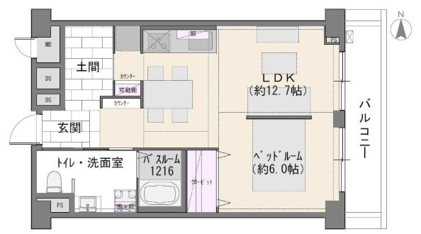 今回ご紹介するのは、7号棟4階・バルコニーからマリーナと海を望む1LDKの住戸。