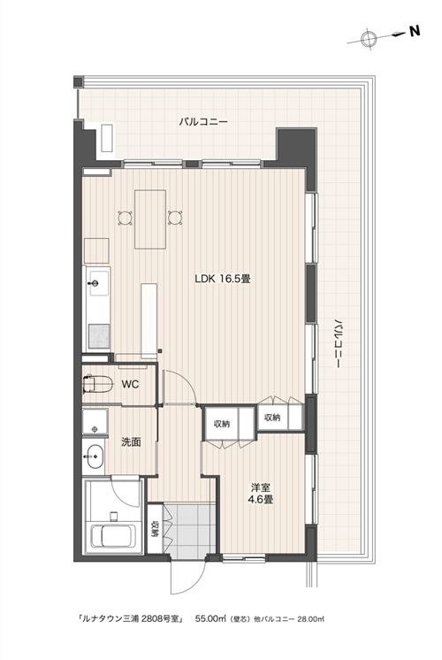 広々とした約28㎡のバルコニーでは、朝のコーヒーや夕暮れのひとときも特別な体験に。都市の喧騒から少し距離を置き、自然に包まれる“半島リラックスライフ”を叶える一室です。